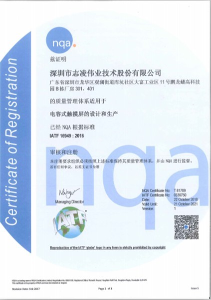 ? ? ? ?歷經(jīng)一段時(shí)間的沉淀與改進(jìn),近日,國(guó)內(nèi)電容觸控解決方案服務(wù)商——志凌偉業(yè)已通過(guò)IATF 16949